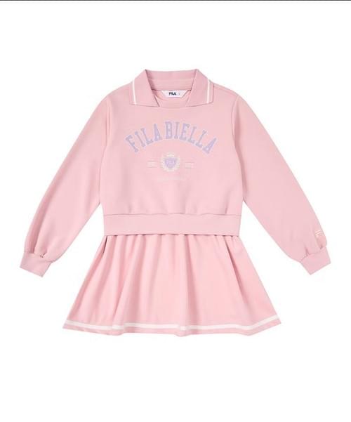 Fila復古學院風連身洋裝(粉)