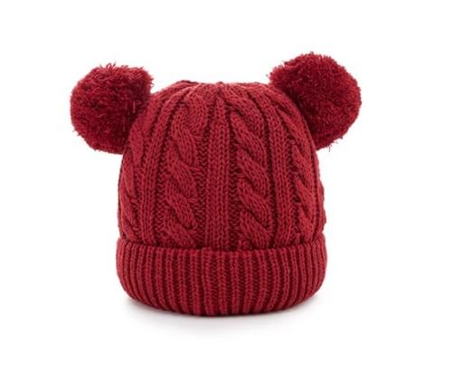可愛小熊針織Fila毛帽 / 紅色