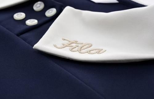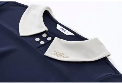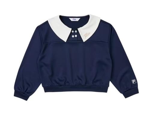 Fila女童學院風長袖排汗快乾上衣(深藍)
