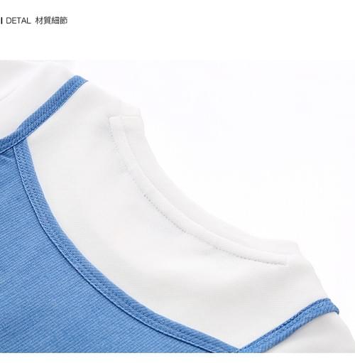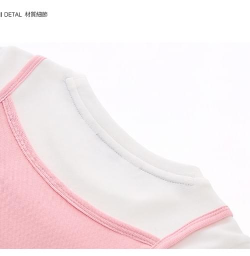 款式設計:胸前印有精緻的紅色愛心標誌,外層背心下擺採荷葉邊設計,增添甜美風格。
