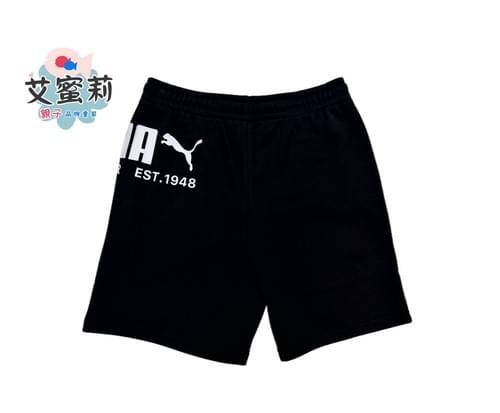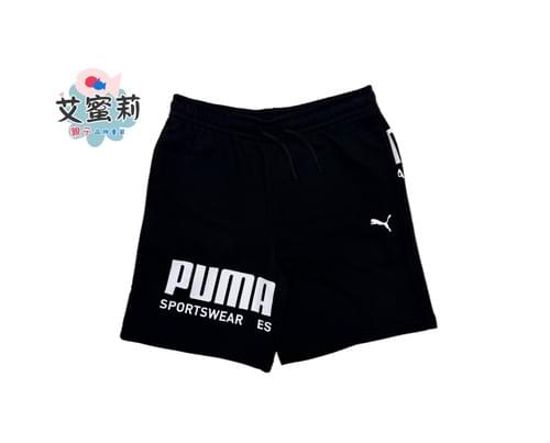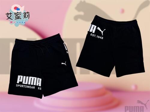 褲身上印有顯眼的 PUMA 品牌標誌與圖形印花,展現品牌特色。